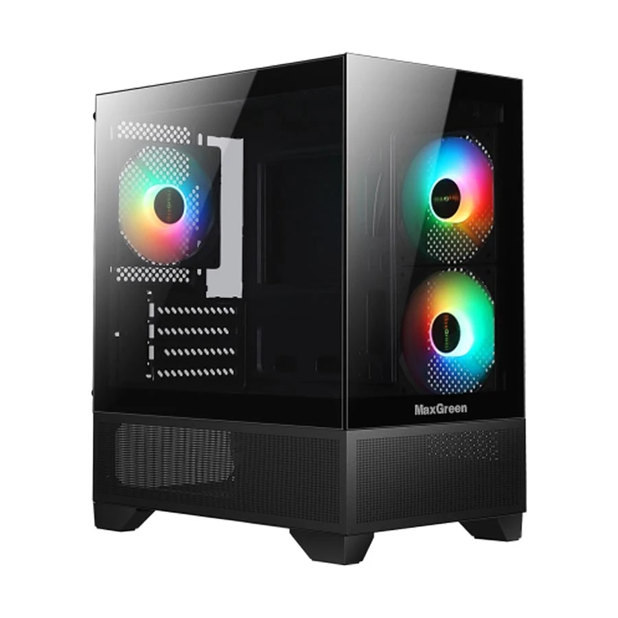 MaxGreen Panora F3 Mid Tower Black Micro-ATX Gaming Desktop Casing with 3 x SN02 ARGB Fan